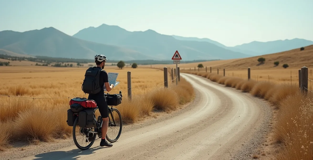 Las guías habituales se centran en listas de equipaje o en la preparación física, consejos válidos pero incompletos. Se da por hecho que la fuerza en las piernas lo soluciona todo. ¿Pero qué pasa cuando el viento sopla en contra durante 50 kilómetros? ¿O cuando una avería mecánica te deja tirado en un tramo sin cobertura? La clave del éxito no reside únicamente en la potencia de pedaleo, sino en la inteligencia con la que se diseña el viaje. Se trata de cambiar la mentalidad: en lugar de planificar para el mejor escenario posible, hay que diseñar un plan robusto que pueda absorber los imprevistos y convertirlos en parte de la narrativa del viaje.