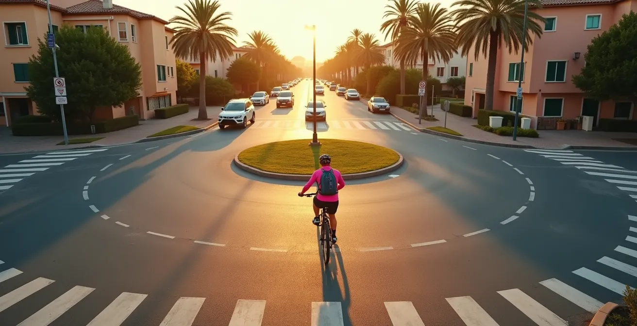 Para muchos ciclistas, urbanos o de carretera, acercarse a una rotonda en España es sinónimo de tensión. El flujo constante de vehículos, la incertidumbre sobre quién tiene la prioridad y la sensación de vulnerabilidad convierten estas intersecciones en puntos negros. Los consejos habituales suelen centrarse en ideas pasivas como «hacerse visible» con ropa de colores o «señalizar los movimientos», pero rara vez abordan el problema de raíz: la falta de control sobre nuestro propio espacio.